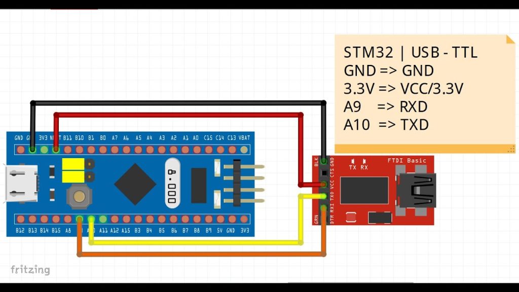Şimdi ise köprümüz ile STM32’nin bağlantısına geçelim: